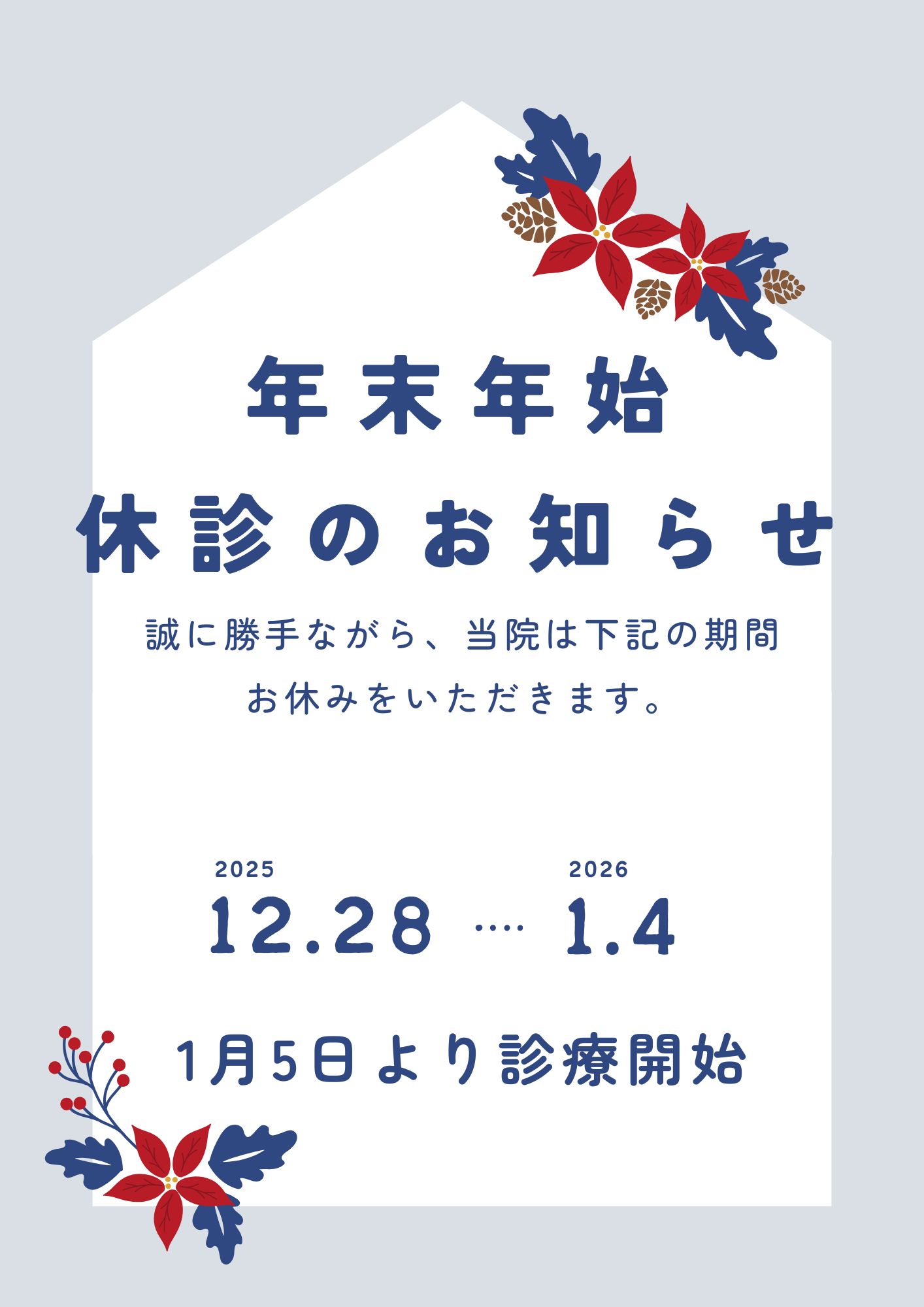 年末年始は下記日程にて休診いたします。